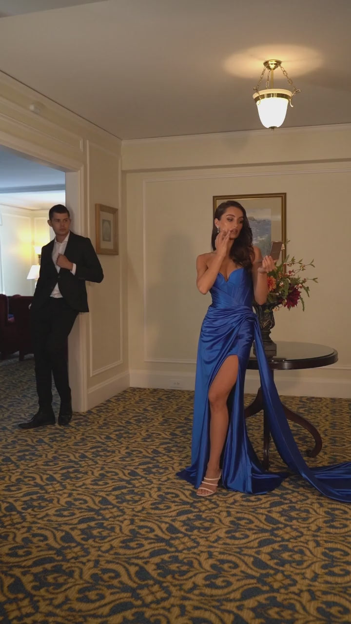 Radiate timeless charm in the Selena fitted satin gown, designed with a strapless sweetheart neckline and a beautifully gathered bodice. Crafted from semi-stretch satin, it offers both comfort and a sleek, flattering silhouette. A lace-up corset back ensures the perfect fit, making this gown an elegant choice for prom, weddings, or any formal occasion.